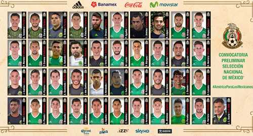 Delanteros: Hirving Lozano, Giovani dos Santos (LA Galaxy), Carlos Vela (Real Sociedad), Cándido Ramírez, Jesús Corona (Porto), Javier Aquino, Isaac Brizuela Javier Hernández (Bayer Leverkusen), Raúl Jiménez (Benfica), Oribe Perlata y Eduardo Herrera.