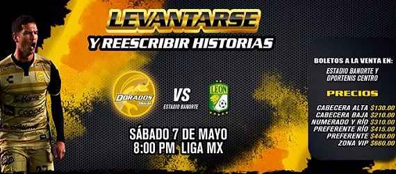 Se cierra la actividad de este sábado 7 de mayo dejándonos listos para la función de boxeo, pero como último choque del día tendremos la despedida de los Dorados del Torneo Clausura 2016 y de la máxima categoría en México, cuando busquen llevarse la victoria al recibir la visita de un León que ya esta calificado y que únicamente buscará sumar los puntos para cerrar en una buena posición y entrar motivado a la liguilla, más allá de las circunstancias esperamos un buen duelo en la cancha del Estadio Banorte.