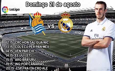 Gran partido tendremos este domingo 21 de agosto continuando con las emociones de la primera jornada en la Liga Española 2016-2017 cuando la Real Sociedad haga su debut en la competencia e intentará hacerlo con el pie derecho,aunque sabe que para conseguirlo deberá hacer un duelo prácticamente perfecto, pero si hay un momento en el que pueden sorprender es justamente en el arranque, tendrán que recibir la visita de nada menos que el Real Madrid que quiere imponer condiciones y empezar su camino al título con la victoria, aunque tendrán que hacerlo en al siempre complicada cancha del Estadio Anoeta.