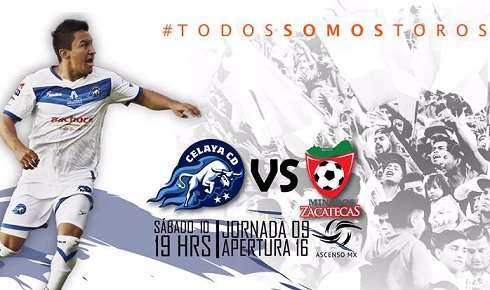 Muy buen partido de fútbol el que tendremos el sábado 10 de septiembre cuando los Toros de Celaya reciban en el Estadio Miguel Alemán Váldes la visita de los Mineros de Zacatecas en duelo correspondiente a la jornada 9 del torneo Apertura 2016 de la Liga de Ascenso Mx.