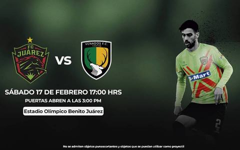 El juego entre Juárez vs Venados se estará disputando en punto de las 17:00, 5:00 pm, hora local de Chihuahua, así como a las 6:00 pm del centro de México; en Estados Unidos iniciará a las 4:00 pm del Pacífico y 7:00 pm del Este.