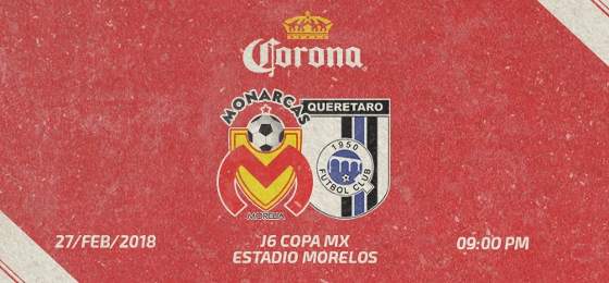 Seguimos con las emociones de la fecha 6 de la Copa MX Clausura 2018 este martes 27 de febrero, cuando el Morelia busque aprovechar su condición de local sabiendo que necesitan el botín completo con, al menos, 2 goles de diferencia para avanzar, pero recibirán a un Querétaro que llega decidido a salir, al menos, con el empate que les garantice su boleto matemático, por lo que estamos listos para un gran duelo en el Estadio Morelos.