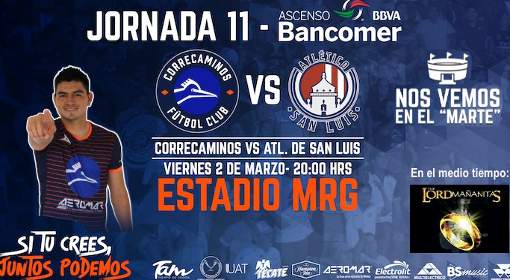Buen partido para seguir la actividad de este viernes 2 de marzo en la jornada 11 del Ascenso MX Clausura 2018, donde los Correcaminos buscarán aprovechar su condición de local para sumar un triunfo que los meta de lleno en la pelea por la clasificación, pero tendrán que recibir a un Atlético San Luis que viene en plan ascendente y que sabe no puede fallar en su visita al Estadio Marte R. Gómez.