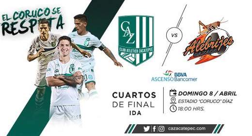 Seguimos con la actividad de los partidos de ida en los Cuartos de Final del Ascenso MX Clausura 2018 este domingo 8 de abril, cuando el Zacatepec busque aprovechar su condición de local para sumar un triunfo que los haga tomar ventaja en la serie, pero recibirán al vigente campeón, los Alebrijes, que quieren iniciar el camino al bicampeonato con triunfo en su visita al Estadio Agustín Coruco Díaz.