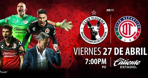 Buen partido tendremos este viernes 27 de abril cerrando el día en la jornada 17 del Torneo Clausura 2018, donde Tijuana buscará aprovechar su condición de local para sumar el triunfo que les permita avanzar a la liguilla, sin embargo, tendrán una misión sumamente dura cuando reciban al Toluca que buscará el récord de 10 triunfos consecutivos, en su visita al Estadio Caliente.