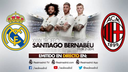 La transmisión del partido Milán vs Real Madrid en VIVO para la televisión será en exclusiva por el Real Madrid TV para Facebook y YouTube, así como por la App oficial en internet, otra opción será seguir el minuto a minuto en vivo mediante las redes sociales que nos actualizarán con goles, asistencias y el marcador final.