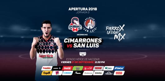Cerramos la actividad de este viernes 21 de septiembre con un gran partido de la jornada 9 del Ascenso MX Apertura 2018, cuando los Cimarrones busquen aprovechar su condición de local para sumar una victoria que los ponga muy cerca de la liguilla, pero recibirán a un Atlético San Luis que no tiene margen de error, necesita sumar en su visita al Estadio Héroe de Nacozari.