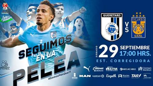 El juego entre Querétaro vs Tigres se estará disputando en punto de las 17:00, 5:00 pm, hora local y del centro de México; en Estados Unidos iniciará a las 3:00 pm del Pacífico y a las 6:00 pm del Este.