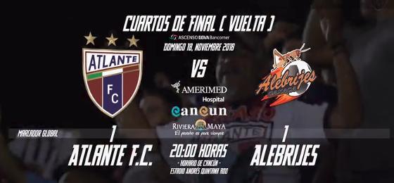 Gran partido nos espera este domingo 18 de noviembre cuando se dispute la vuelta de los Cuartos de Final del Ascenso MX Apertura 2018, donde el Atlante buscará aprovechar su condición de local para sumar una victoria que les de el boleto a las semifinales, pero recibirán a los Alebrijes de Oaxaca que saldrán con todo a la cancha del Estadio Andrés Quintana Roo.